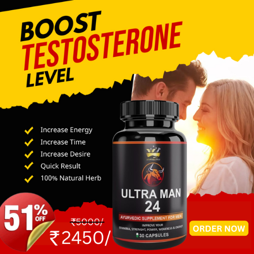 Unlock the potential for enhanced intimacy and a fulfilling sex life. The secret behind Ultra Men 24 effectiveness in boosting sexual wellness lies in its premium-quality ingredients. This unique formulation combines powerful herbs that are carefully infused to stimulate testosterone production and ignite the flame in your relationship. Being the best libido booster for men, Ultra Men 24 Testosterone Boosters are packed with aphrodisiac natural ingredients which are curated to upgrade muscle size, boost libido, improve erection quality, amplify stamina, and create a pleasurable experience by revitalizing sexual conditions. So, say goodbye to lacklustre performance in the bedroom and hello to a new level of sexual vitality.